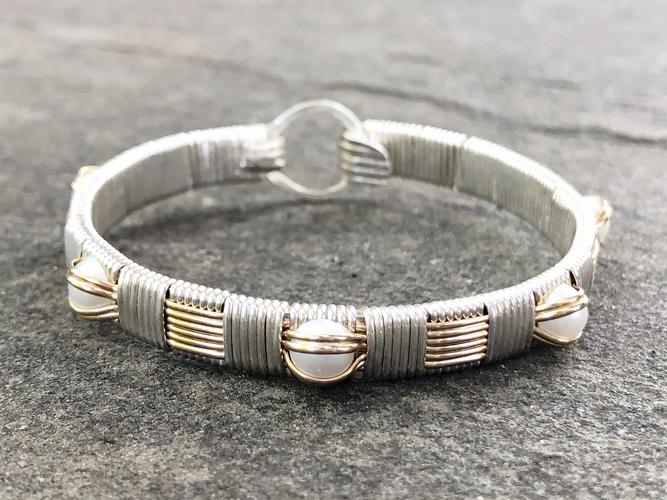 This intricate hand fabricated ring was made using only the finest Argentium Silver Wire and 14 karat gold filled wire. Argentium silver offers a more white color that is closer to fine silver than traditional sterling silver, yet is also extremely low on tarnish. Hand made by Ryan Eure, this...